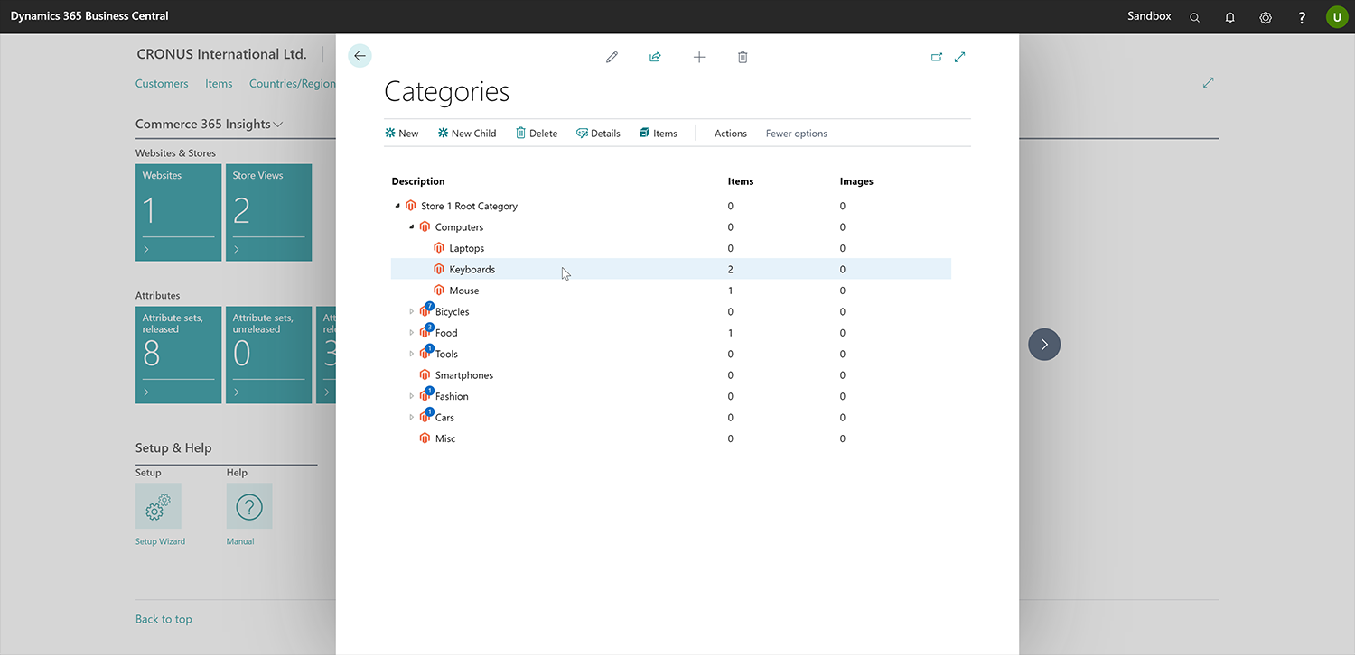 Managing one or more category structures is as easy as it can get. Commerce 365 adds full drag & drop category management to Business Central. Want to add a new category? Just click right and do so.